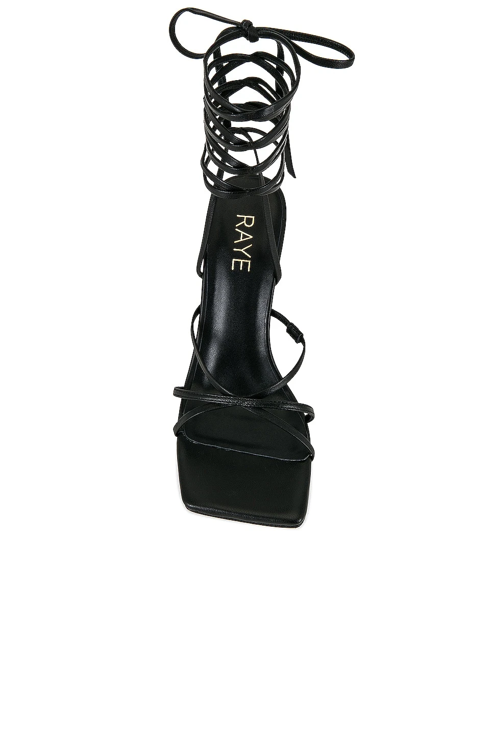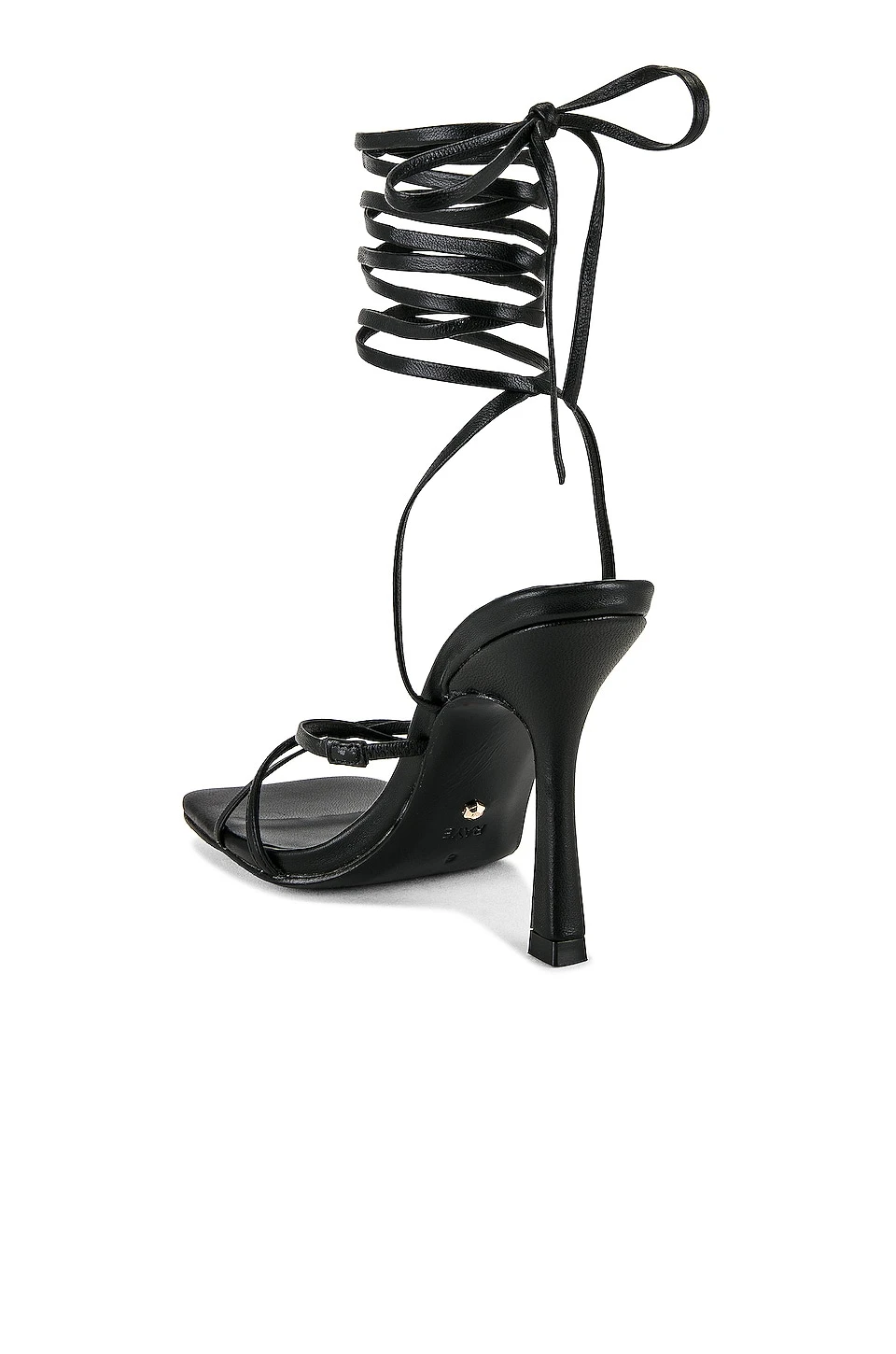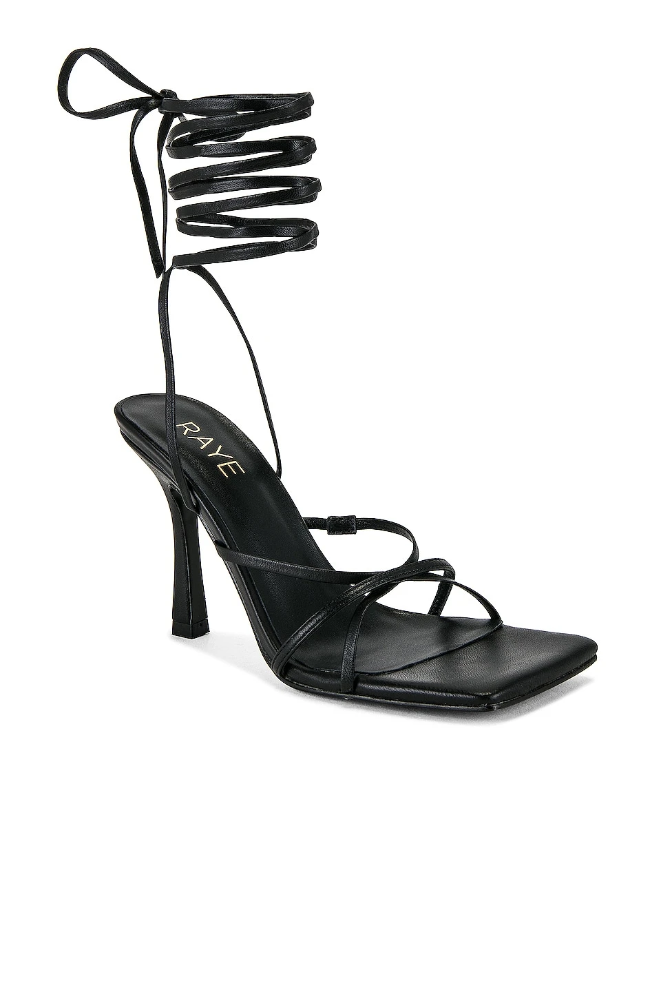 - Wrapped ankle strap with tie closure